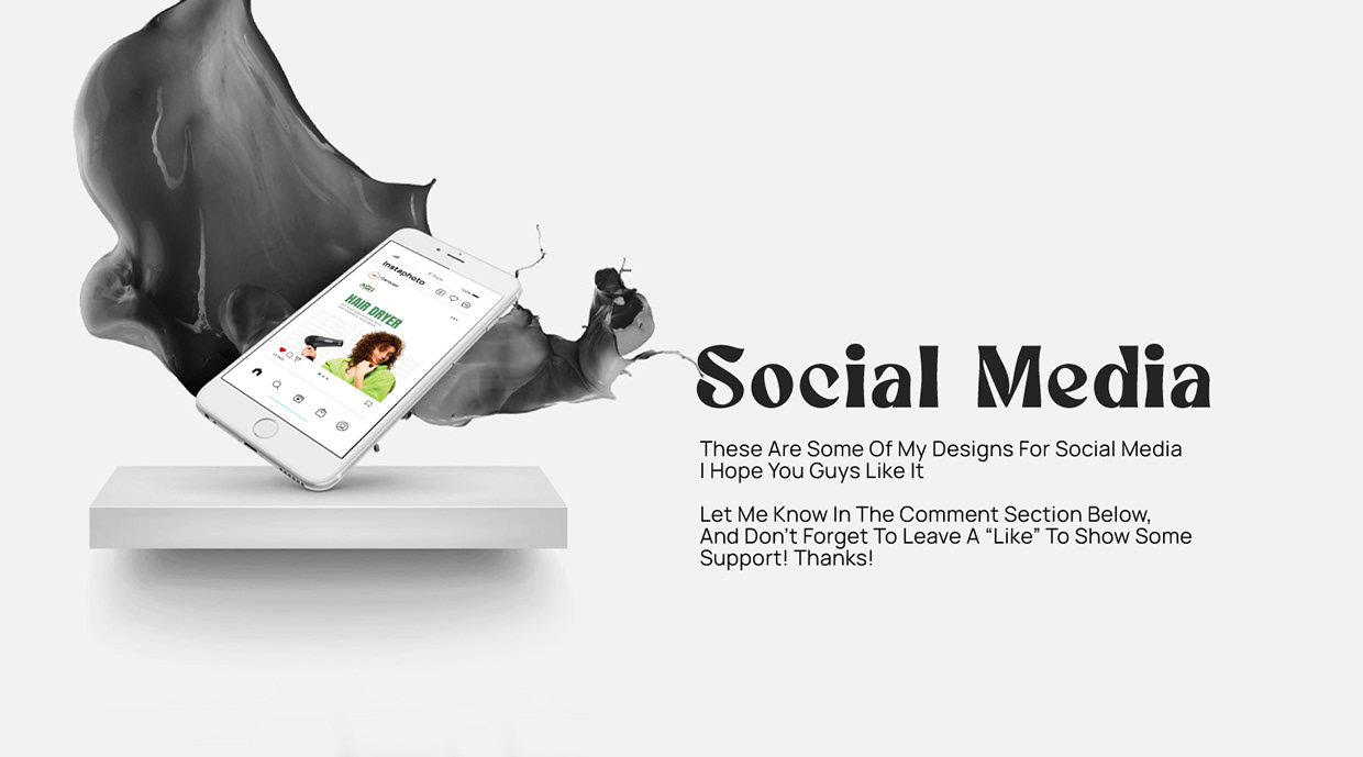 A modern and minimal showcase of social media designs presented through a clean floating-phone concept. This project highlights various creative layouts, product posts, and promotional graphics crafted with a focus on clarity, branding, and visual storytelling. The dynamic splash effect and 3D presentation elevate the display, adding a cinematic edge while keeping the overall style professional and modern. This collection reflects versatility, aesthetic balance, and a strong understanding of impactful digital design.