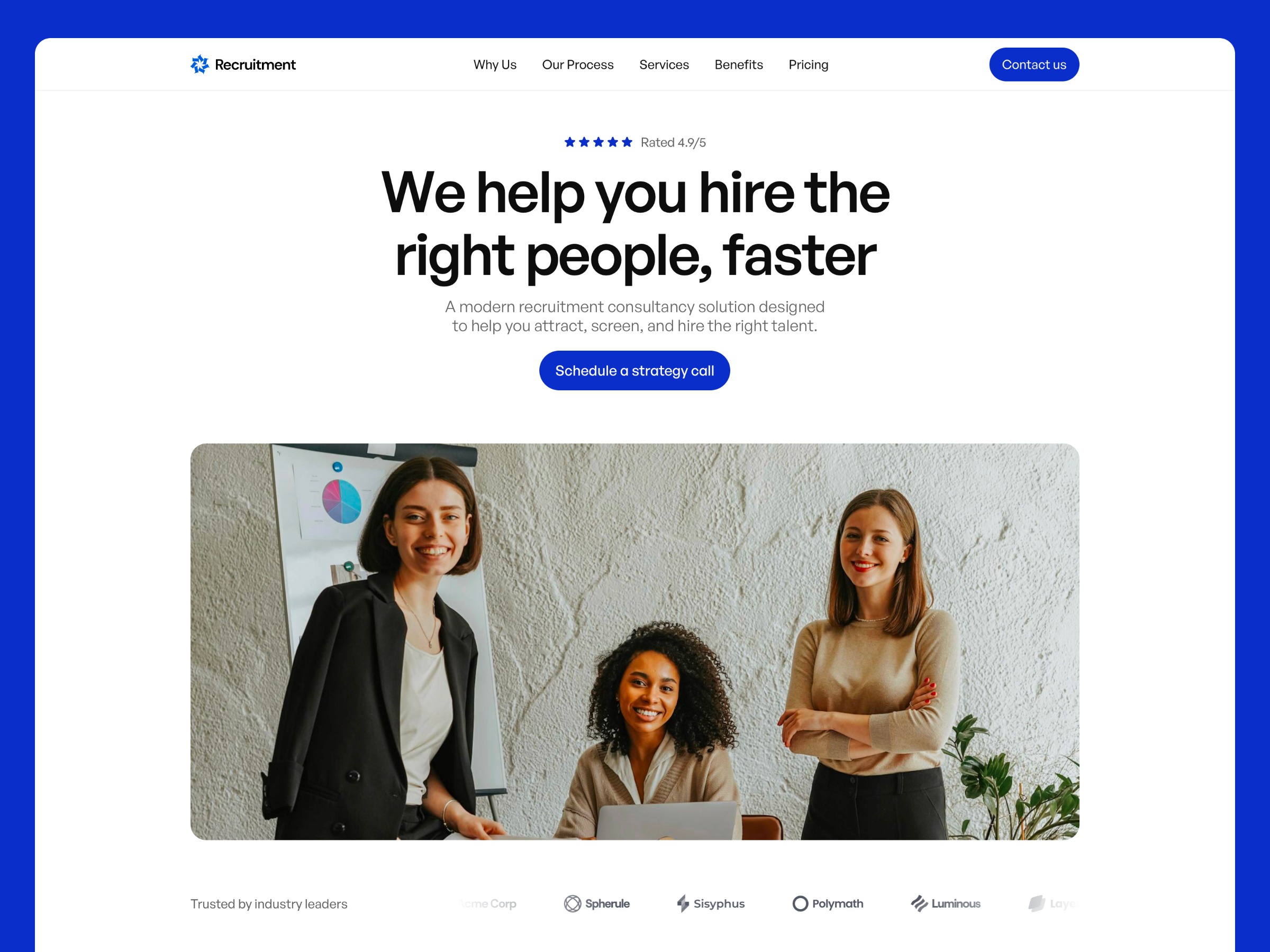 A modern consulting Framer template designed for HR agencies and hiring firms. Perfect for showcasing services, process, pricing, and testimonials. Remix link: https://framer.link/yYjtowI