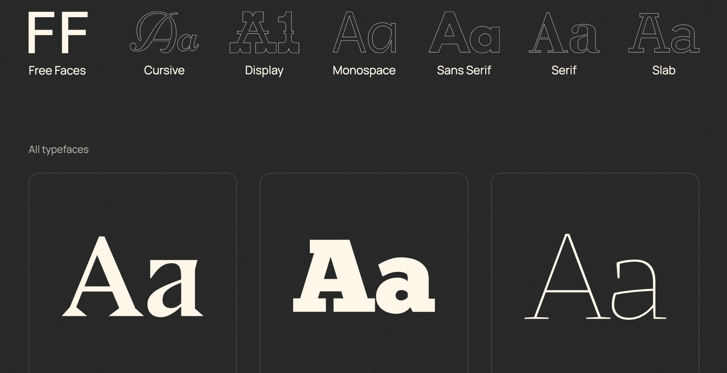 This website is a curated collection of typefaces that are available under a variety of free licences somewhere on the interwebs.