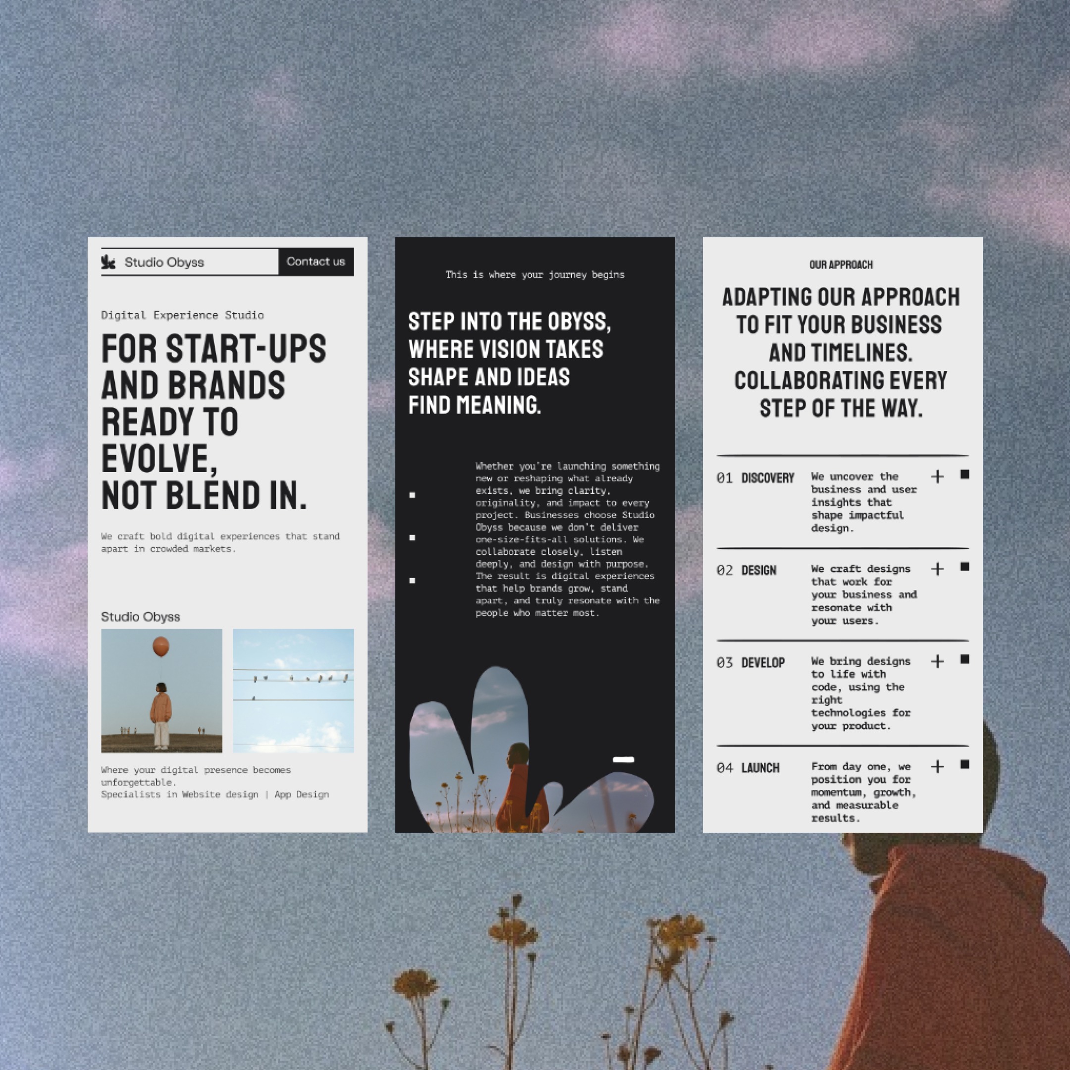 Website design for our studio, Studio Obyss which is a London‑based digital experience studio offering website design & development, product design & development, and UX research.