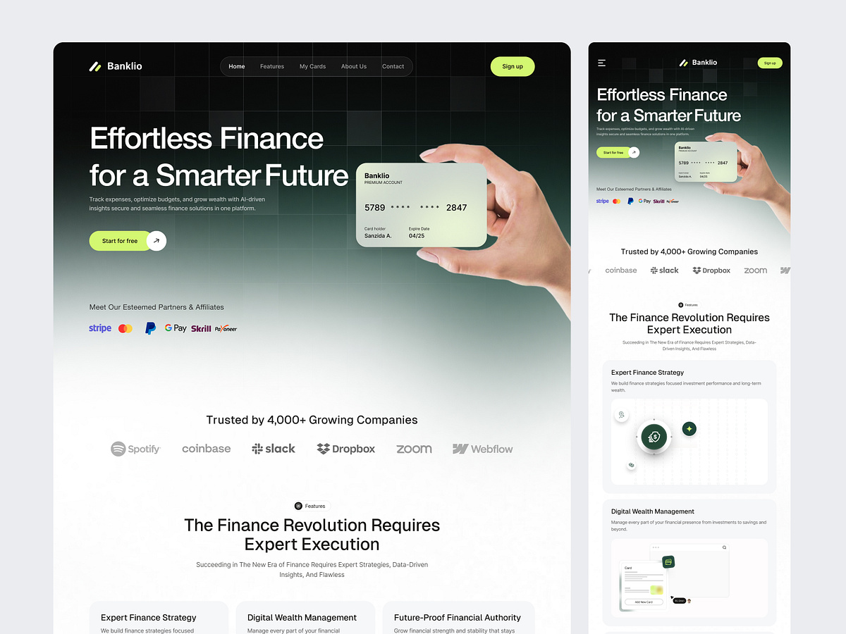 We designed Bankilo, a modern fintech SaaS landing page built to simplify digital banking and financial management for individuals and businesses. The experience focuses on security, clarity, and ease of use helping users manage money with confidence. Key highlights of the the Design : → Smart account overview with real-time balance insights → Seamless money transfer, request, and payment flows → Expense tracking and financial analytics dashboards → Secure onboarding with clear feature explanations → Clean, modern UI designed for trust, speed, and scalabilityA conversion-driven fintech experience designed to make banking simple, transparent, and accessible in one powerful platform.
