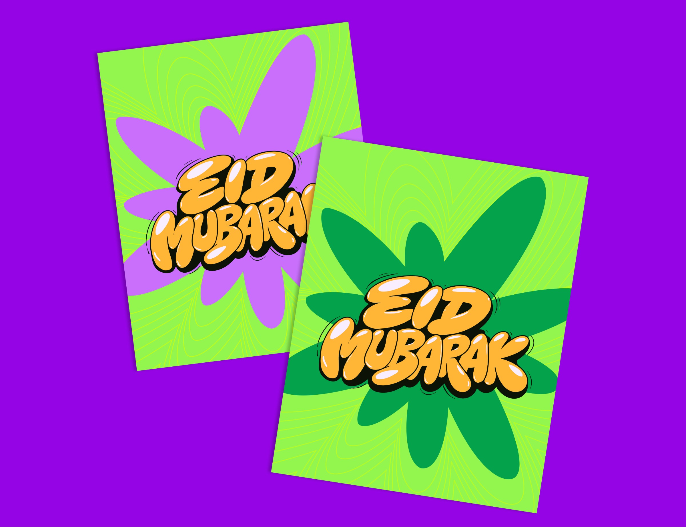 Creative Eid Mubarak typography design inspiration. Modern Islamic graphic design with colorful lettering style perfect for Eid poster, greeting card, social media post and Ramadan festival artwork. Great typography idea for designers looking for Eid Mubarak lettering inspiration.