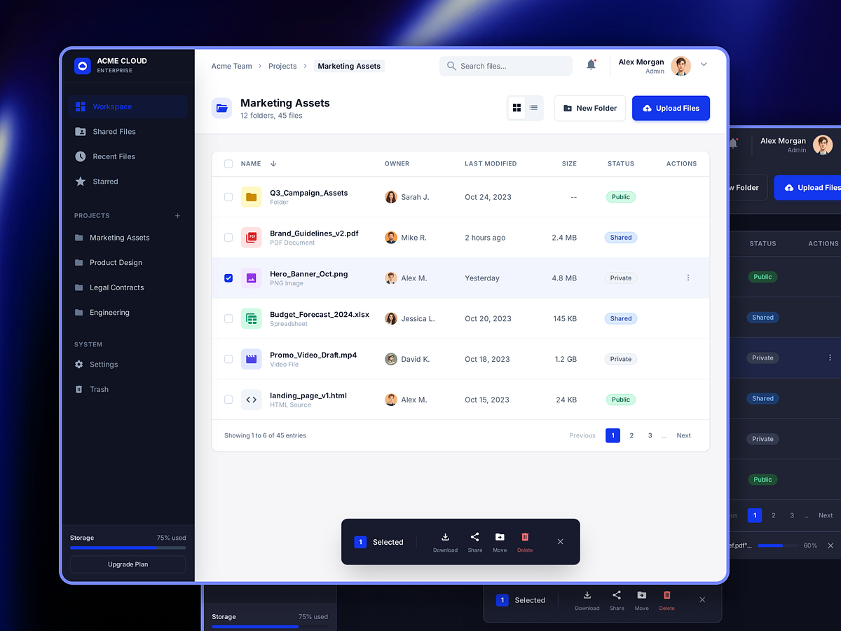Acme Cloud - Saas Team File Manager Dashboard UI Design