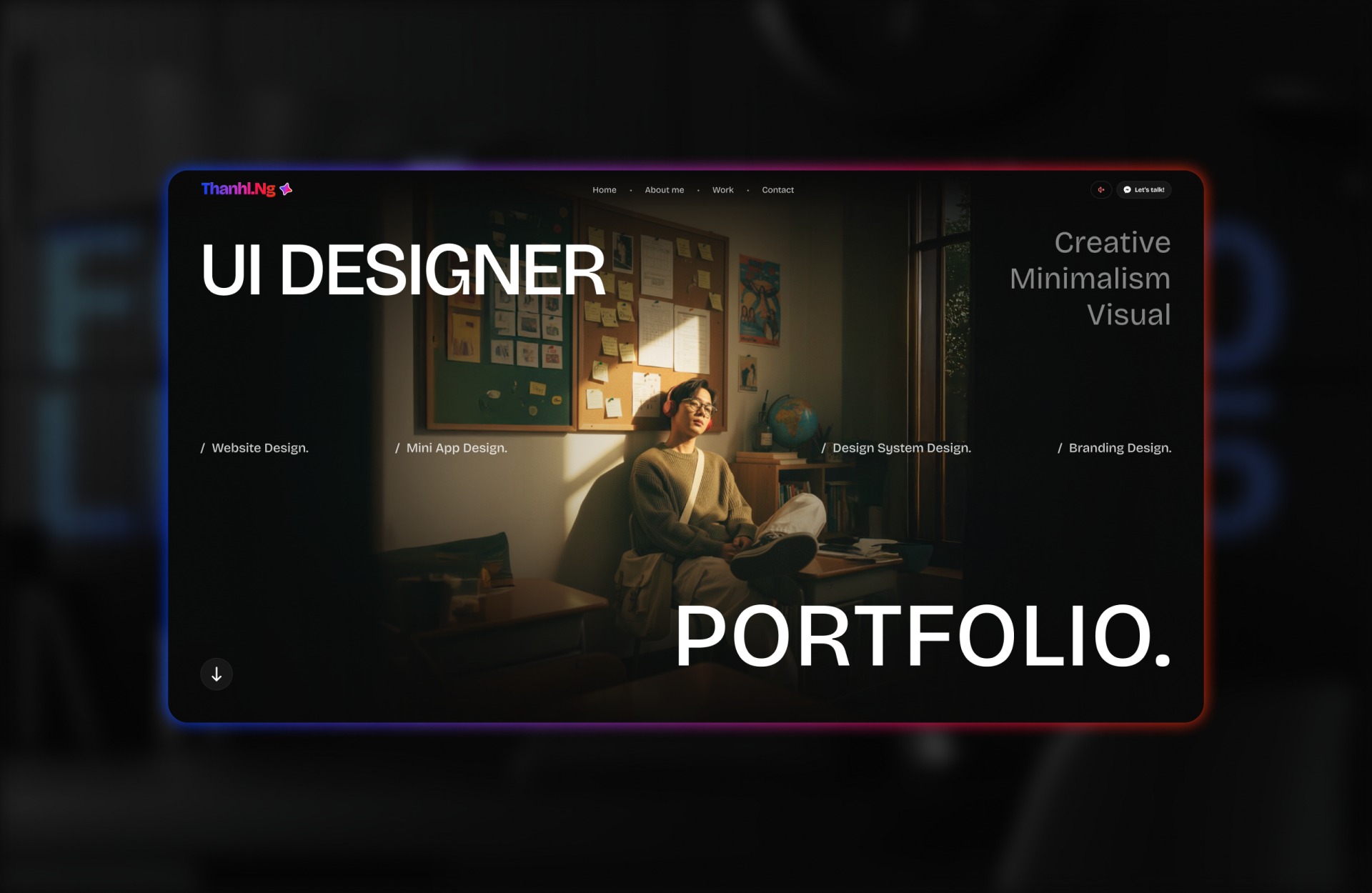 Inspired by cozy study and work spaces, I designed this Hero Section as a distinct greeting to the viewer. The central image acts as an emotional anchor, while the outer interface design remains minimalist and straightforward. I pursue the Creative Minimalism Visual style, focusing on strong contrasts between light and dark to create depth and attraction. The goal is to create a cozy yet professional space, highlighting my role as a UI Designer.