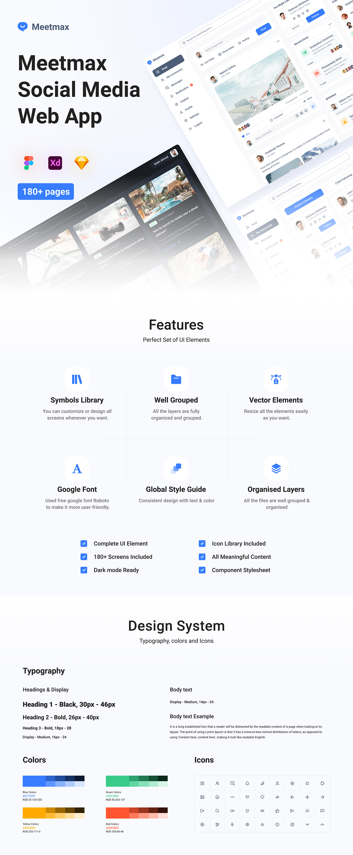 Meetmax is a social media networks web App design. The social media networks is for people that like to meet new people and enjoy their time together. Your users will love your site because it gives them a unique user experience (UX), clean, modern & beautiful design. Well layered and organized, responsive resize, global color and text styles, and with free fonts family from Google Fonts (Roboto). What will you get? - 180+ beautiful Screens design - Figma Files 100% editable and scalable. Thank You For Your Time.