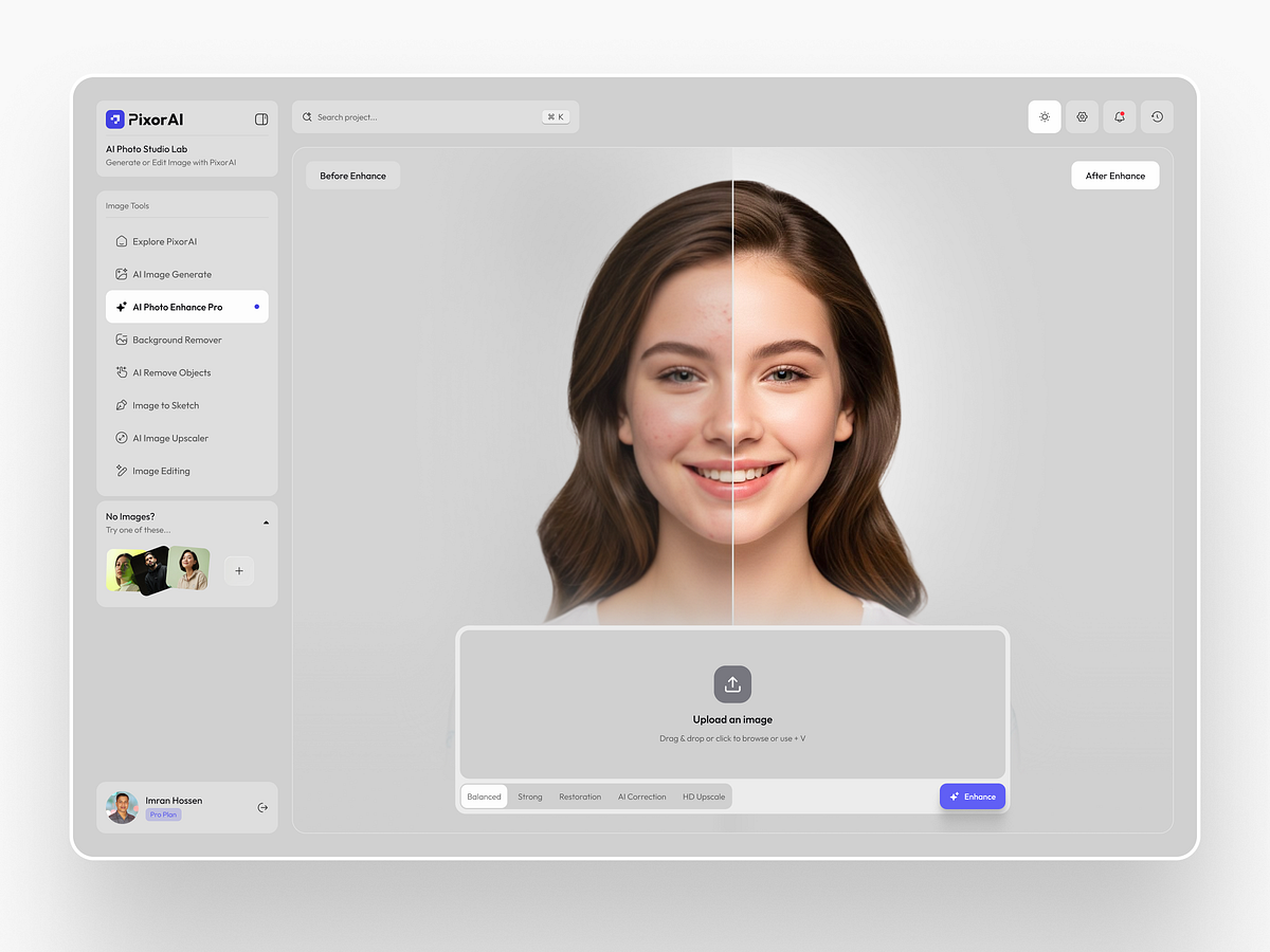 AI Photo Enhance WebApp for SaaS Dashboard