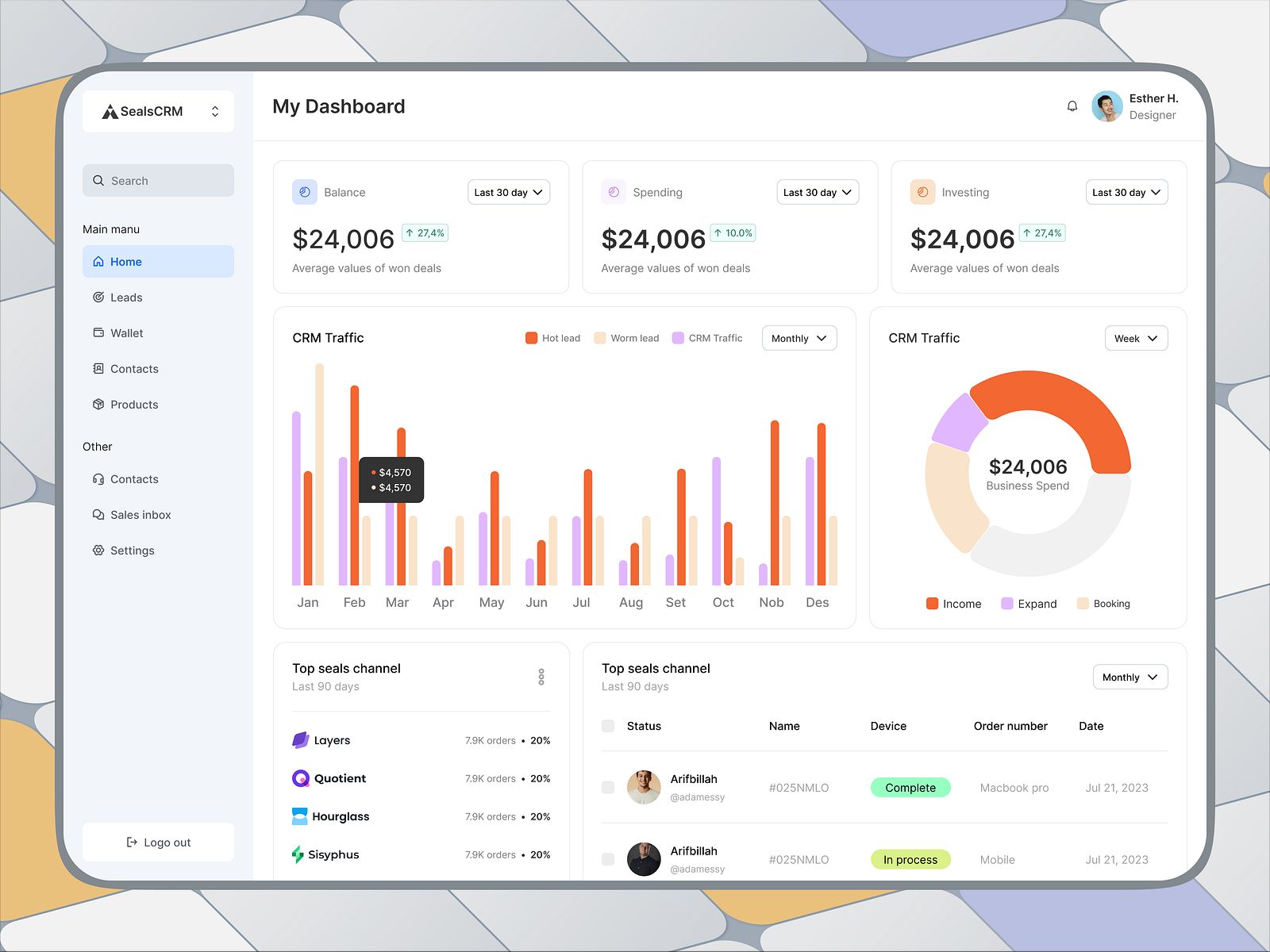 SealsCRM Dashboard — Clean UI With Responsive Layouts by Vislume Studio