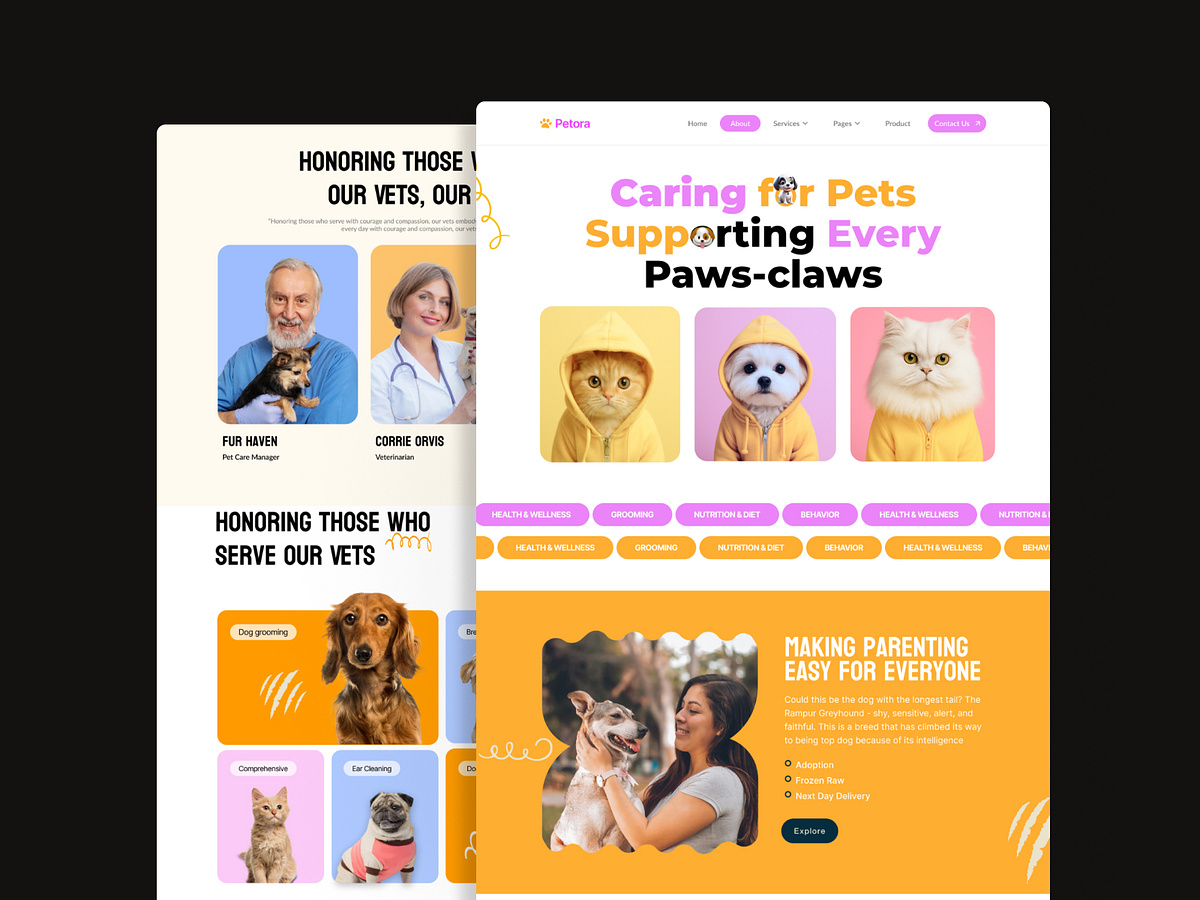 Introducing a Pet Caring Solution Website Design crafted to feel friendly, trustworthy, and easy to navigate. The design focuses on a clean layout, warm visuals, and a smooth user experience to help pet care services clearly present their offerings and connect with pet owners. This concept highlights: • Clean and approachable UI • Friendly color palette and visuals • Clear service structure for pet care solutions • User-focused navigation and flow • Modern design tailored for pet-related businesses Designed for pet care platforms, veterinary services, grooming centers, and pet wellness brands seeking a reliable and engaging digital presence. Let's discuss your concept. #petcare #petwebsite #webdesign #uidesign #uxdesign #uiuxdesigner #modernui #cleanui #landingpagedesign #servicewebsite #digitaldesign #websiteconcept #designinspiration #creativedesign #dribbble #petlovers #vetdesign #animalcare