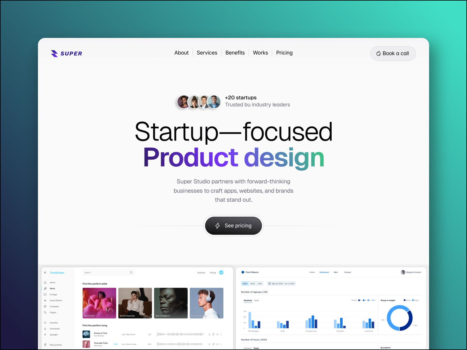 A portfolio landing page for product design agencies, perfect for anyone working in the tech scene. Ideal for agencies and UX/UI designers.