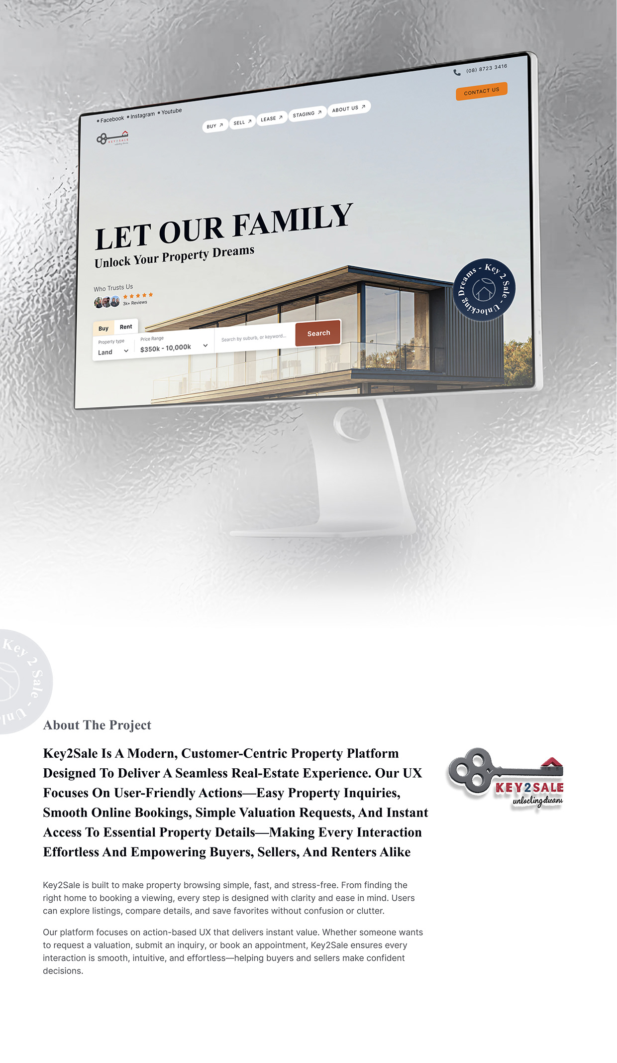 Key 2 Sale is a South Australia–based real estate agency and a proudly Certified B-Corporation. Their existing website lacked visual hierarchy, modern appeal, and clear user pathways. Our goal was to redesign the site to enhance credibility, elevate the brand, and dramatically improve the property-search experience.