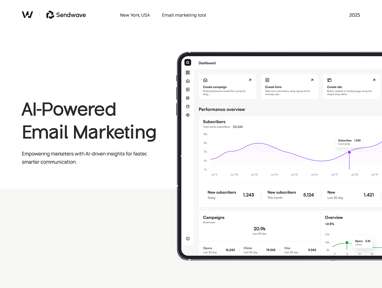 Sendwave is an AI-powered email marketing platform built for marketers, creators, and brands to plan, automate, and analyze campaigns in one intuitive workspace. Inspired by tools like MailerLite, Sendwave simplifies complex marketing workflows through clear UX design and intelligent automation. This case study explores a scalable web app design that merges simplicity with power — from campaign creation and form building to goal-based automations and deep analytics dashboards. Each interaction is crafted for flow, transparency, and measurable impact. The design approach focuses on modern SaaS principles: clean layout, modular components, and adaptive typography. With Sendwave, marketing teams can create smarter campaigns, understand subscribers better, and grow faster through AI-driven insights.