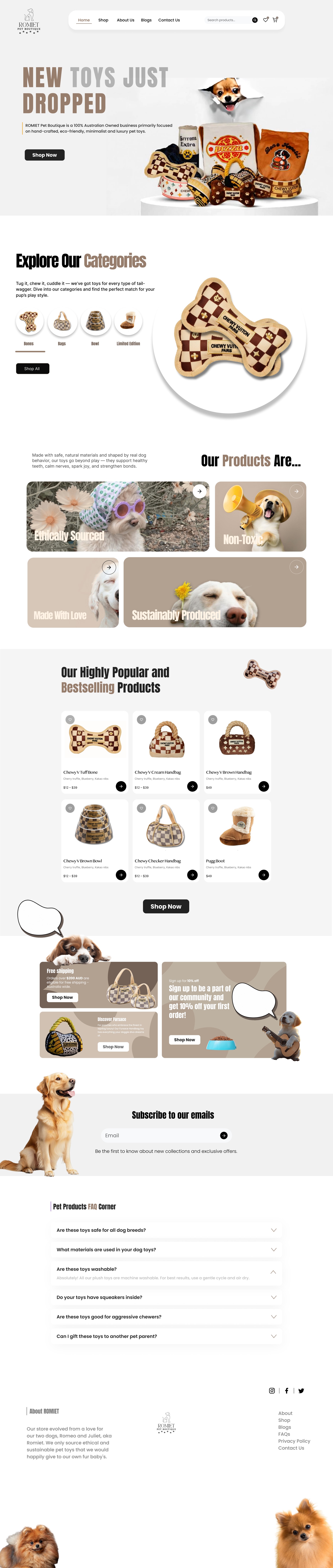 Website redesign for ROMIET Pet Boutique is a 100% Australian-owned business primarily focused on handcrafted, eco-friendly, minimalist, and luxury pet toys.