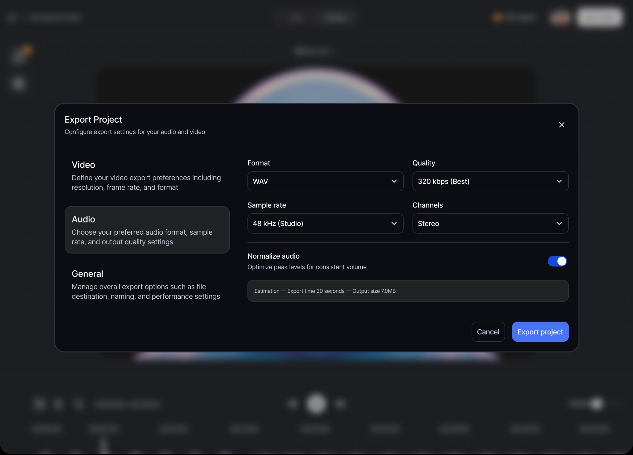 Export Project - Consistent UI