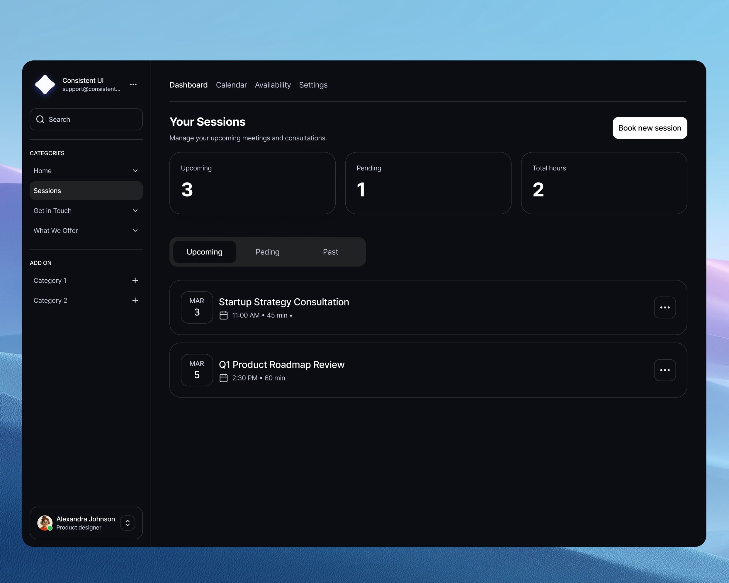 Built with Consistent UI Consistent UI is a modern Figma design system crafted to help designers move fast without sacrificing quality. It gives you everything you need to build clean, consistent interfaces - from foundations and tokens to advanced, responsive components. Design confidently with a system that keeps your workflow organized, scalable, and visually refined.