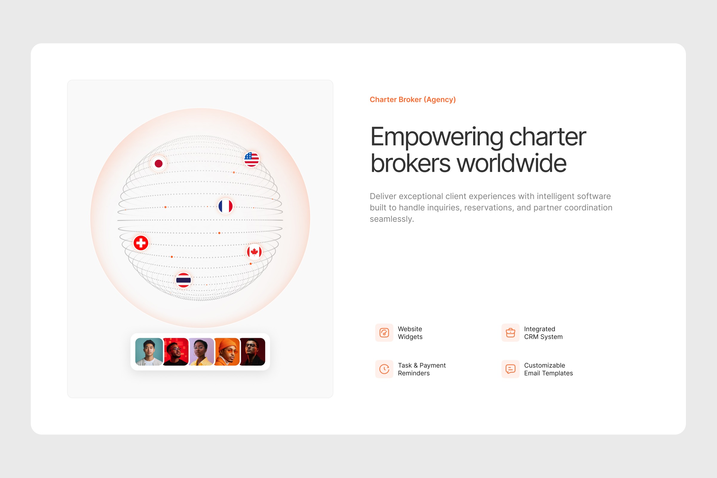 Charter Broker Agency Feature Section UI 🌍