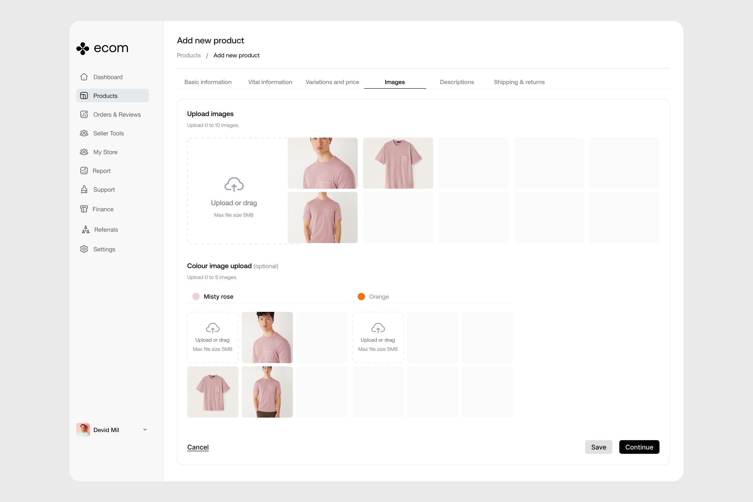 This E-commerce Product Upload Dashboard is designed to make product management smooth, intuitive, and distraction-free. With a clean layout and step-by-step navigation, sellers can easily upload images, manage color variations, and organize product details without confusion. The soft, minimal interface ensures focus stays on the product while maintaining a professional backend experience. Key Design Highlights: • Clear multi-step product creation flow • Drag-and-drop image upload system • Variant-based color image management • Minimal sidebar navigation for quick access • Balanced whitespace for better readability The goal: Simplify backend complexity and create a seamless product listing experience for modern e-commerce platforms. 📩 Let’s collaborate: hellozainstudio.craft@gmail.com