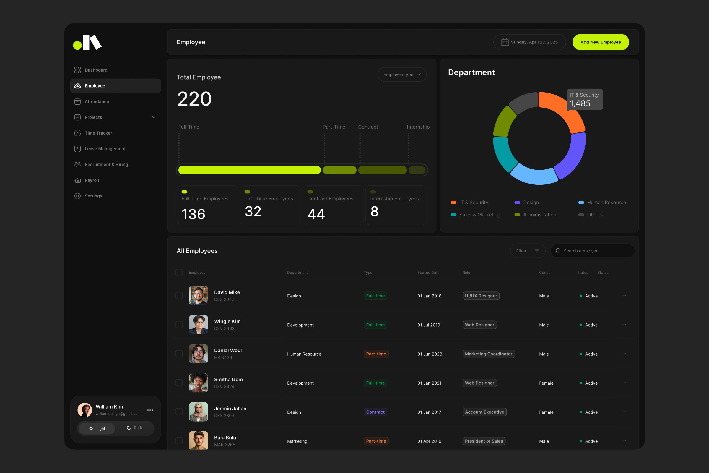 HR & Employee Management Dashboard Design