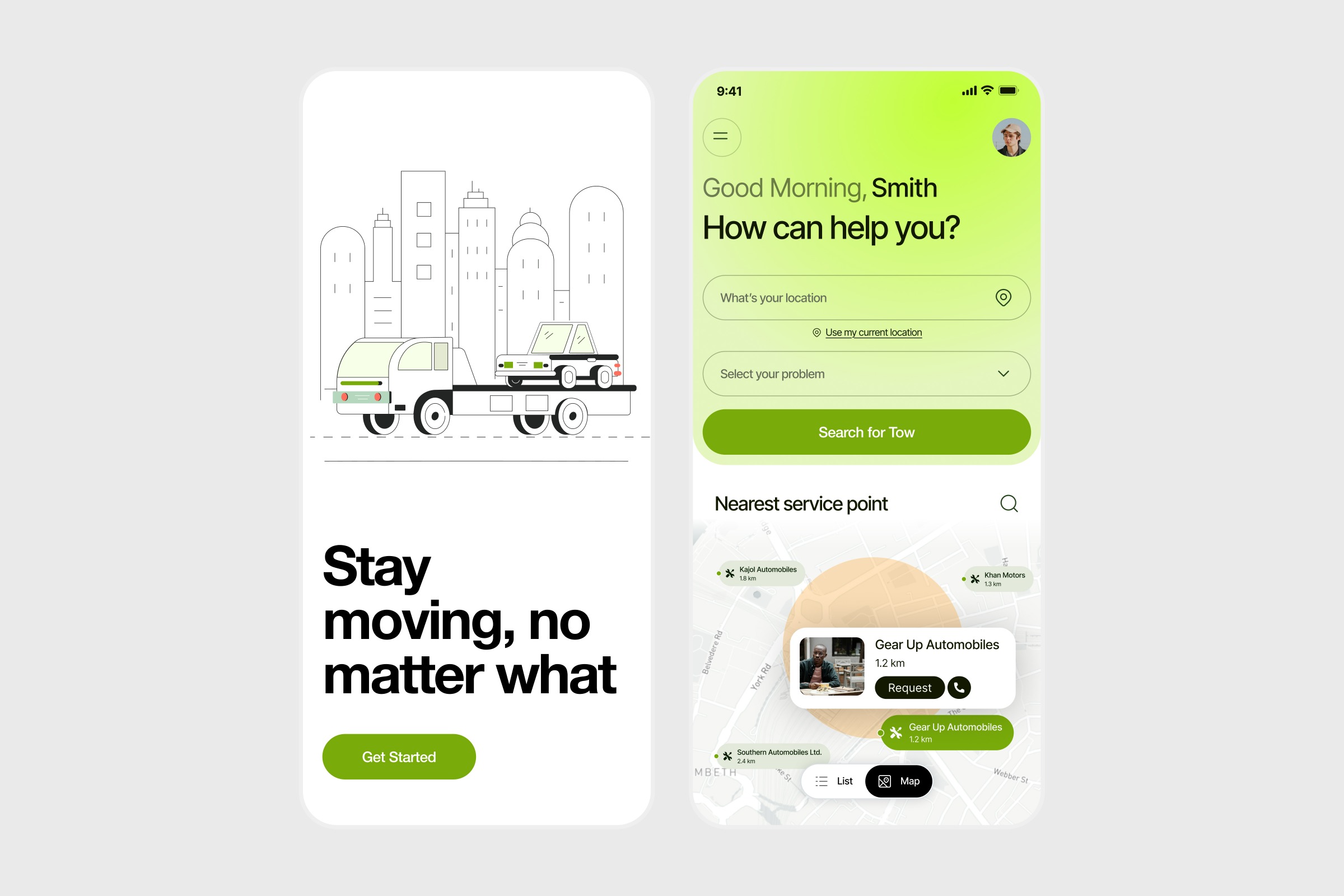 Designed an on-demand towing service mobile app focused on speed, clarity, and ease of use during high-stress situations. The experience is built to help users quickly request assistance by minimizing steps and highlighting key actions. From location detection to selecting issues and finding nearby service providers, every interaction is optimized for urgency and simplicity. Key design decisions: • Action-first UI for quick service requests • Location-based flow for faster discovery • Minimal steps to reduce friction • Map integration for real-time visibility • Clean and friendly interface for better usability The goal was to create a seamless and reliable experience that helps users get assistance without delay. 📩 hellozainstudio.craft@gmail.com