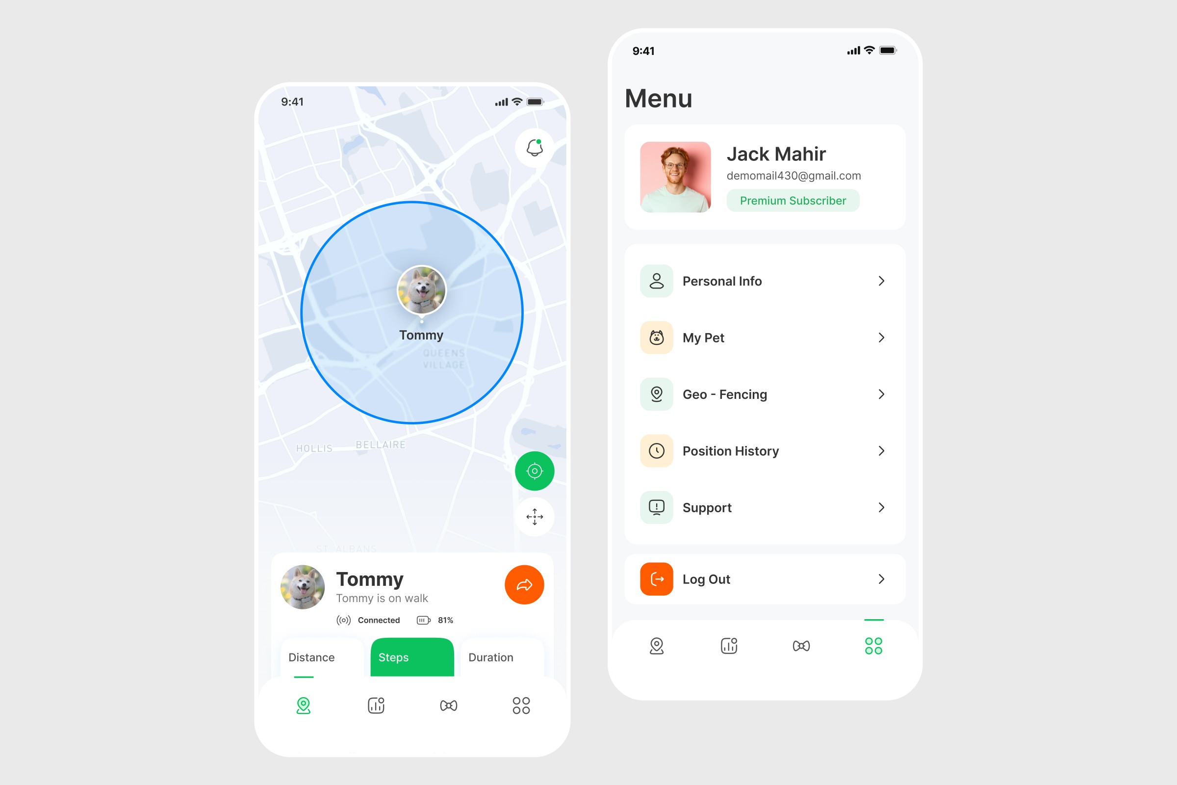 Pet GPS Tracking & Geo-Fencing Mobile App UI
