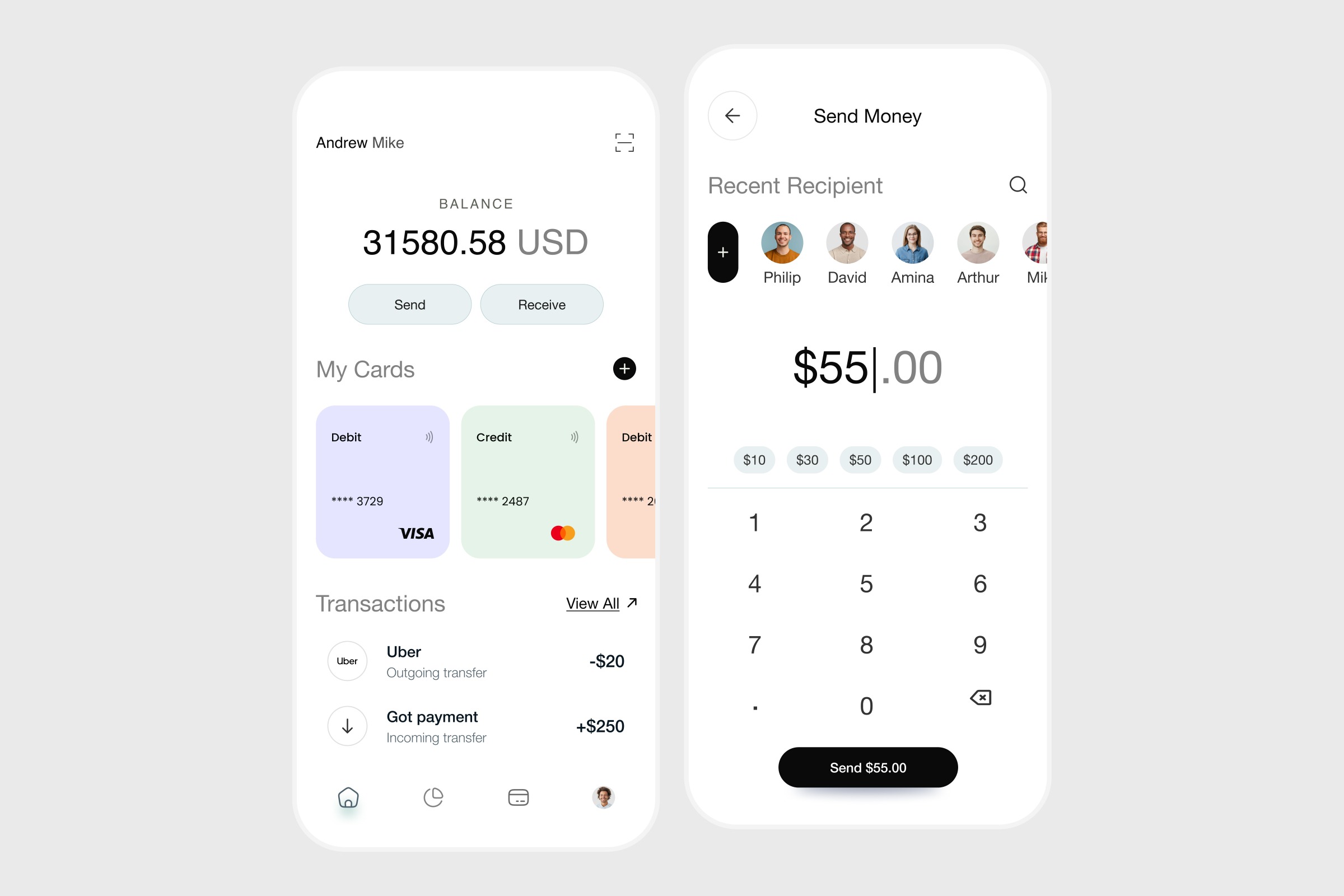 Smart Finance & Money Transfer Mobile App UI
