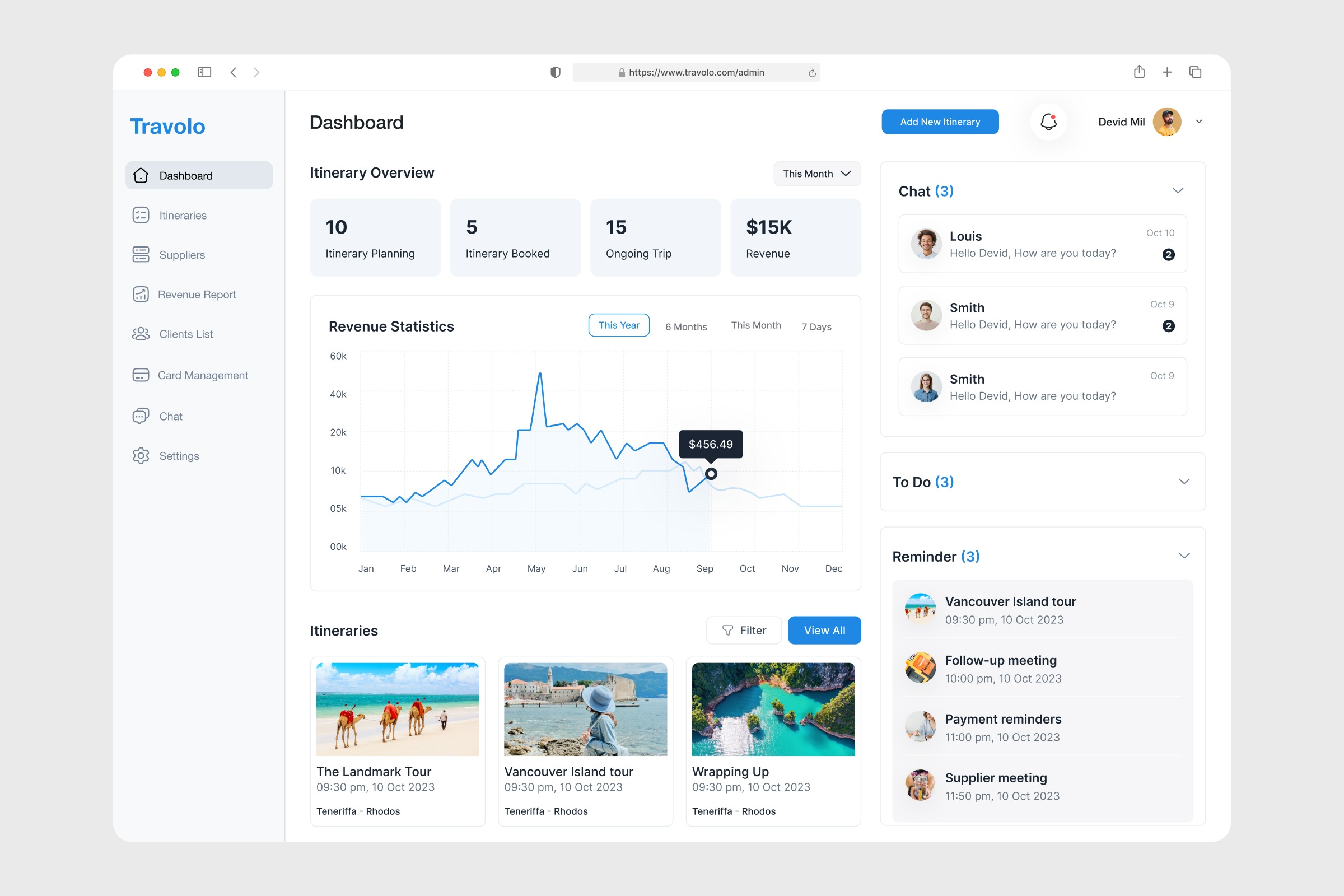 Travel Management Dashboard UI