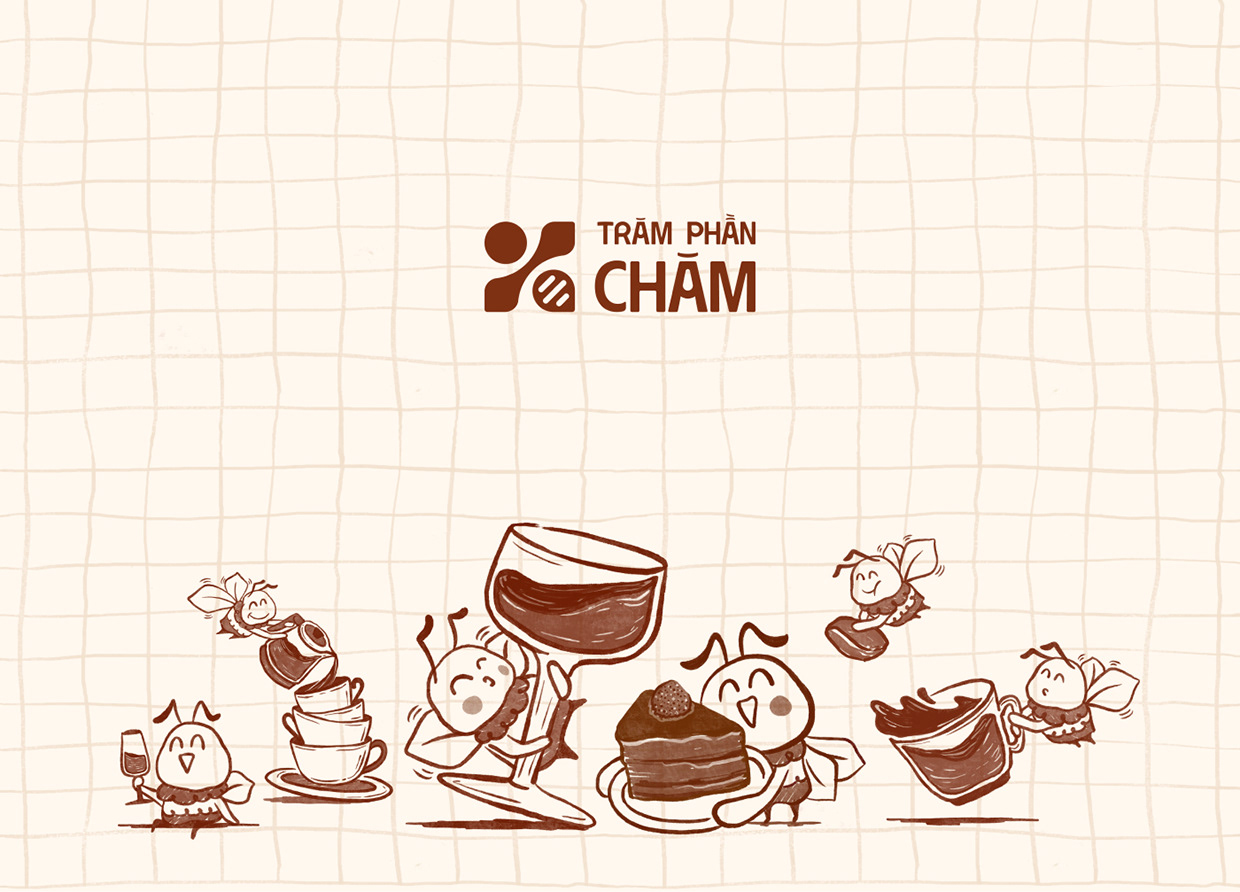Tram Phan Cham is a coffee space inspired by nature and the spirit of companionship, where people can take time to care for themselves, foster community connections, and nurture sustainable growth. The logo, inspired by the image of a bee and the percent (%) symbol, reflects a philosophy of balance, sharing, and a commitment to delivering 100% quality to every customer.